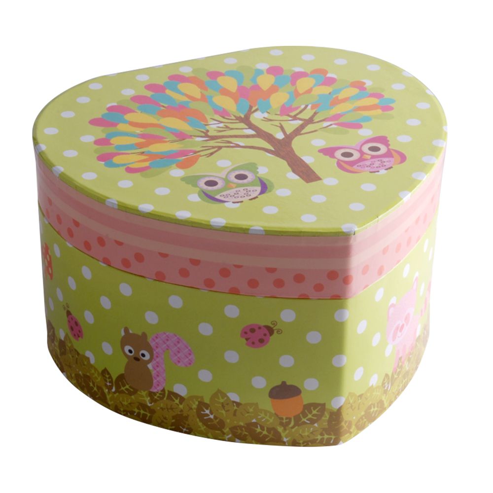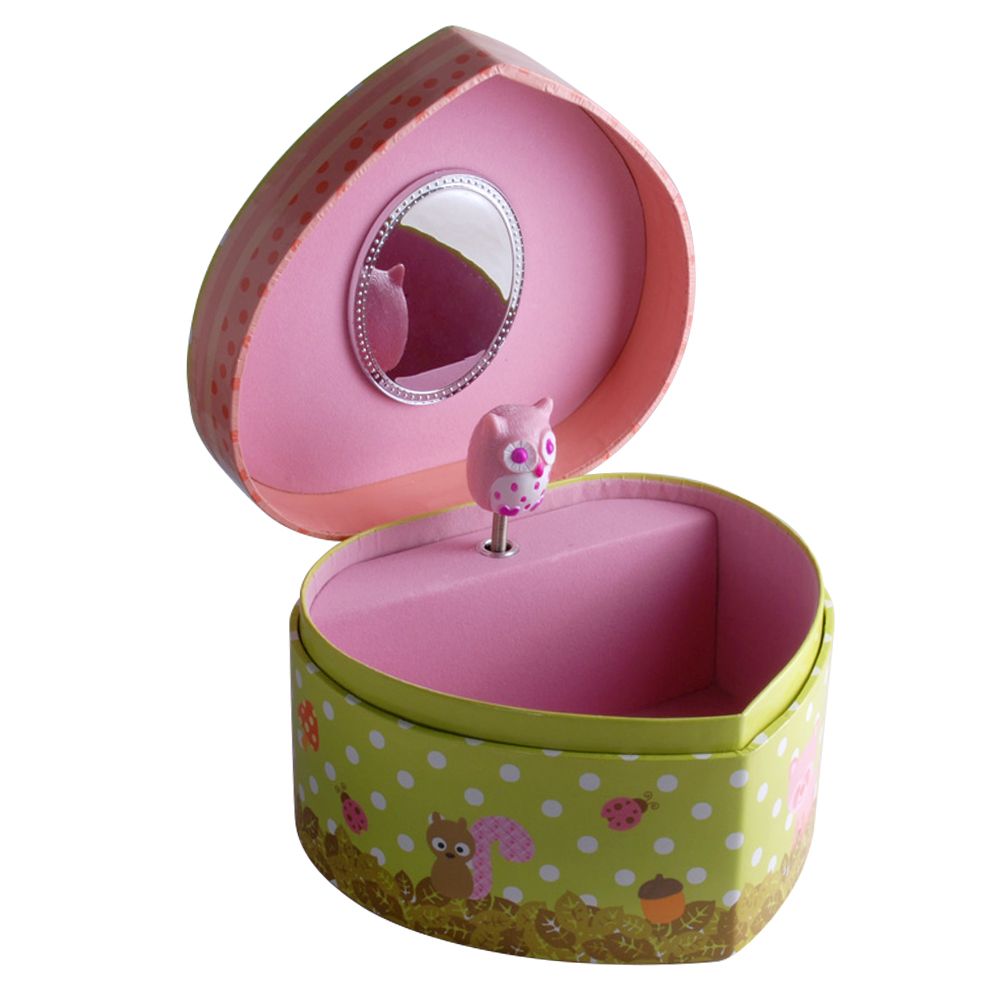 Hjerteformet smykkeskrin med ugler. Smykkeskrinet spiller melodien