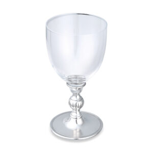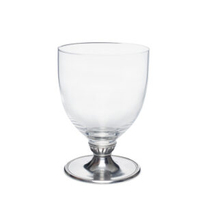 Flott champagneglass i krystall av høy kvalitet med en stett i blankpolert tinn. Høyde: 19cm Rommer: 19 cl