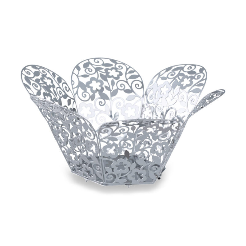 Nydelig sølvfarget juleskål for telys med blomstermotiv. Høyde: 5 cm Diameter: 10,5 cm