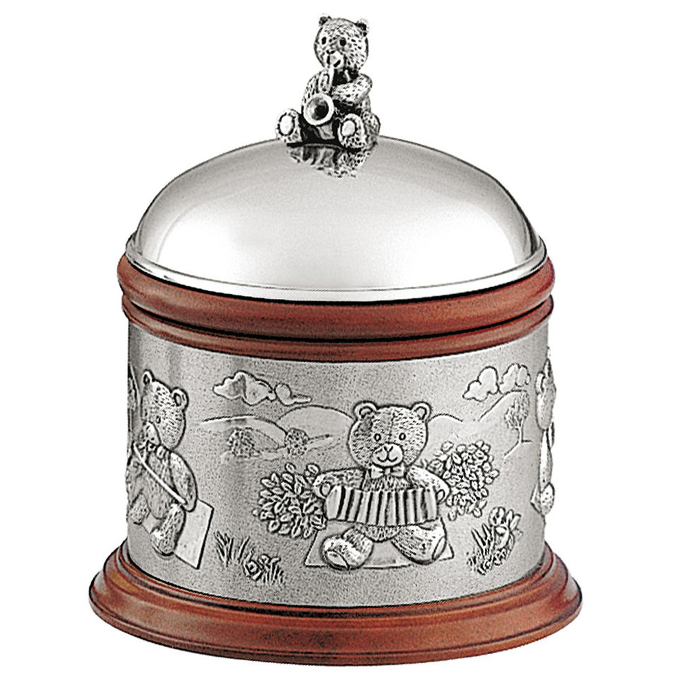 Flotte og søt spilledåse med bamsemotiv. Høyde: 15cm Diameter: 12.5cm