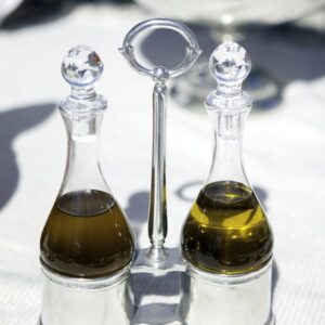 Flott smørkoppp i tinn fra Askvoll. Kopi av en smørterrin laget av Nils Nyberg, Bragernes i 1740. Dybde: 5,5 cm Diameter: 18 cm